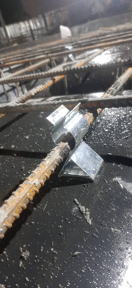 4. در زمان بتن‌ریزی، فشار بتن باعث نمی‌شود میلگردها پایین‌تر بروند، چون اسپیسر بار را تحمل می‌کند.